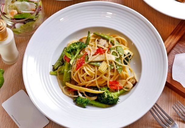 - 將拌好的 蔬食義大利麵 盛入溫熱的盤中。