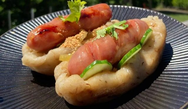 - 大腸包小腸組合: 烤得微焦脆的糯米腸剖開,夾入同樣烤得香噴噴的香腸,加上蒜片、醃黃瓜、薑片,一口咬下,碳香、蒜香、肉汁交融,簡單粗暴的好吃!份量紮實。