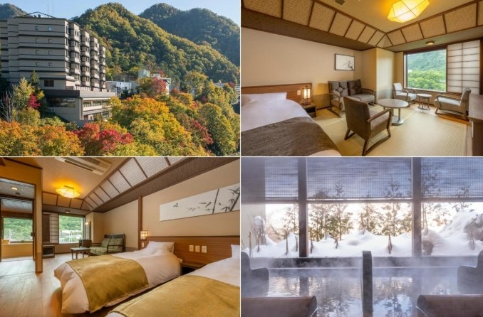 介紹: 老牌大型溫泉飯店,視野超級無敵好!很多房間和浴場都能俯瞰定山溪谷,尤其楓紅和雪景時段,美到像明信片。設施齊全,有多個不同特色的大浴場、岩盤浴、甚至還有卡拉OK(適合團體)。自助晚餐種類豐富,北海道產食材吃飽飽。