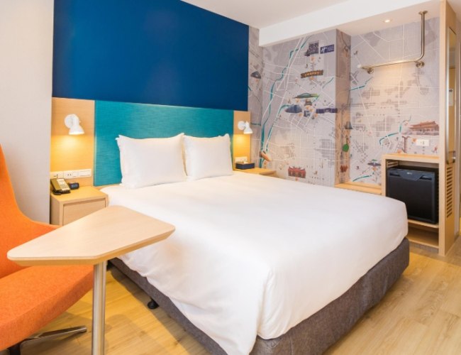 - 稍外圍但品質穩+有機會停車:逢甲智選假日。雖然價格比上面三者高,但品質穩定安全,雙人房空間雖不大但尚可接受,且有「機會」停到免費車位,步行到夜市也只要5-8分鐘。早餐豐富也算省一餐錢。